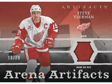 • The popular Arena Artifacts insert is back! This year’s edition commemorates the historic Joe Louis Arena, home to the Detroit Red Wings from 1979-2017. As it was the home of some of the greatest teams in NHL history, Joe Louis Arena hosted the Stanley Cup Finals an impressive six times. Each card in this special set #’d to 79 features a legendary Red Wings player (who played in The Joe) alongside a piece of a seat relic from the vaunted arena.
